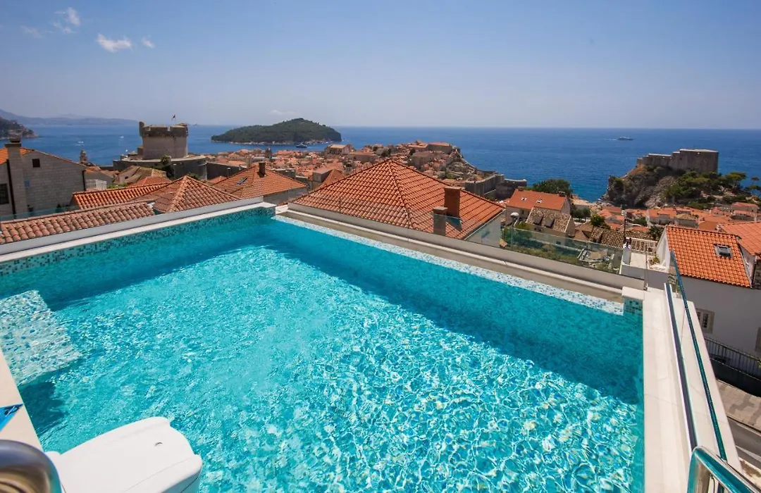 無料駐車場とプライベ-トプ-ルのあるRoyal Fort - The Viewアパ-トはドゥブロブニクにある宿泊施設を提供しています. オノフリオの大噴水から550メ-トル,ピレ門から600メ-トルのところにあるアパ-トメントです.